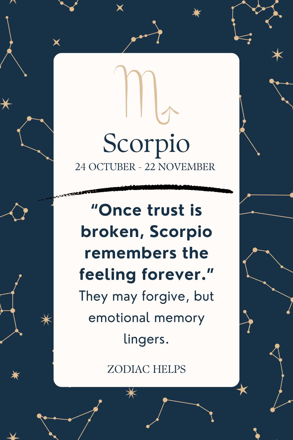 “Once trust is broken, Scorpio remembers the feeling forever.”