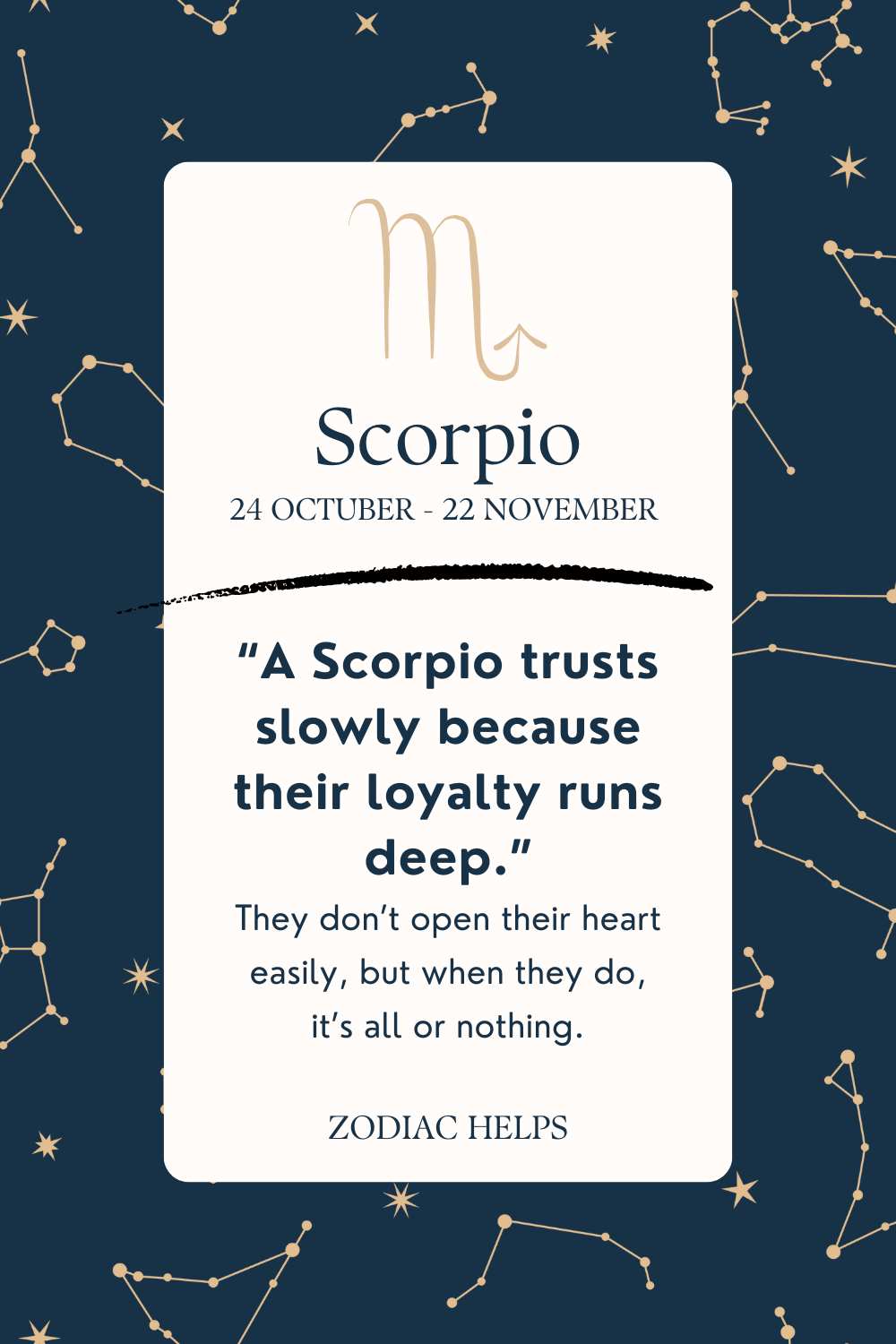“A Scorpio trusts slowly because their loyalty runs deep.”